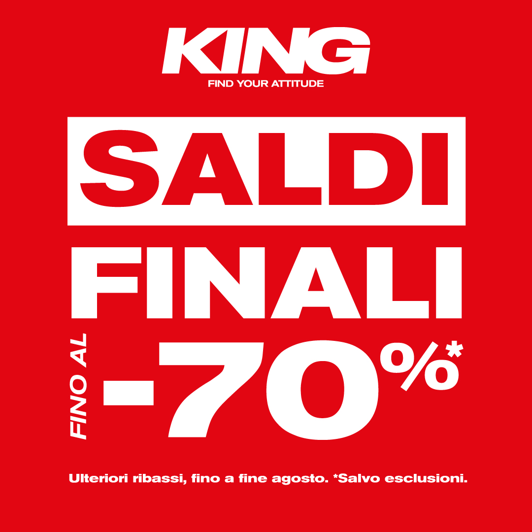 Da KING è tempo di SALDI FINALI! Ulteriori ribassi sui tuoi brand preferiti fino al -70% su abbigliamento, scarpe e accessori ...